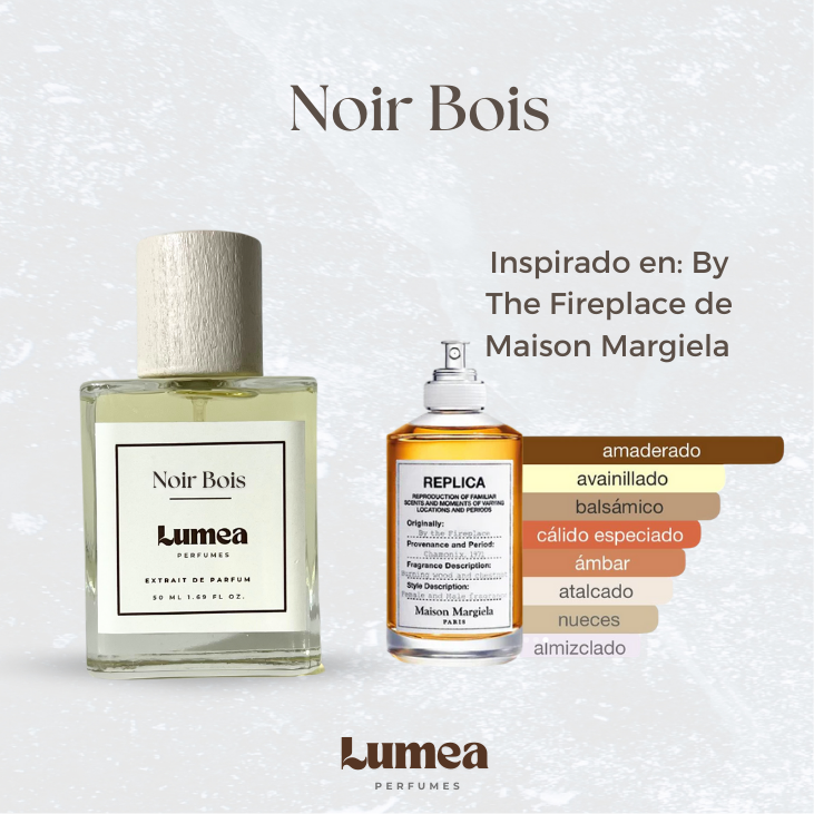 Noir Bois envuelve como una caricia cálida en una noche de invierno. Inspirado en By the Fireplace, este perfume mezcla acordes ahumados, amaderados y dulces que evocan el crepitar de la leña, el confort del hogar y el romanticismo de una tarde frente al fuego. Una fragancia envolvente y nostálgica, ideal para quienes buscan profundidad, calidez y carácter.